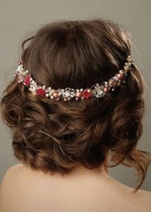 - Greek wreath. If it was decided to make a similar hairstyle on the basis of a hairstyle, then you must first straighten the hair with a flat iron, then separate with a hairbrush or comb. An additional element is a thin elastic bandage that is passed through the back strands of hair, leaving the front curls slightly curled.