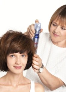 A haircut is performed on wet hair, but it is worth noting that water should not drain from the ends of the hair. The entire area of the haircut is divided into four segments, the horizontal and vertical stripes are divided from the middle of the head. Begin the haircut from the head, in a timely manner wetting the hair in the process of working with a spray.