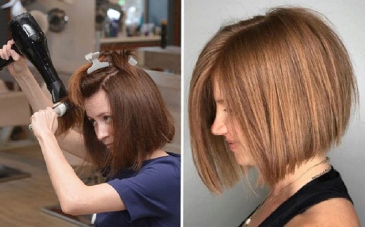 To make styling for this haircut, you need to wet and clean hair with foam or mousse. After that, you should make a parting on the selected line with a comb or comb. Using a brush or hair dryer with a round comb, you need to twist the front strands, directing warm air to the hair from top to bottom. At the roots at the crown, the hair should be raised with a comb and blow-dried to create volume. It is necessary to fix the stacking with varnish.