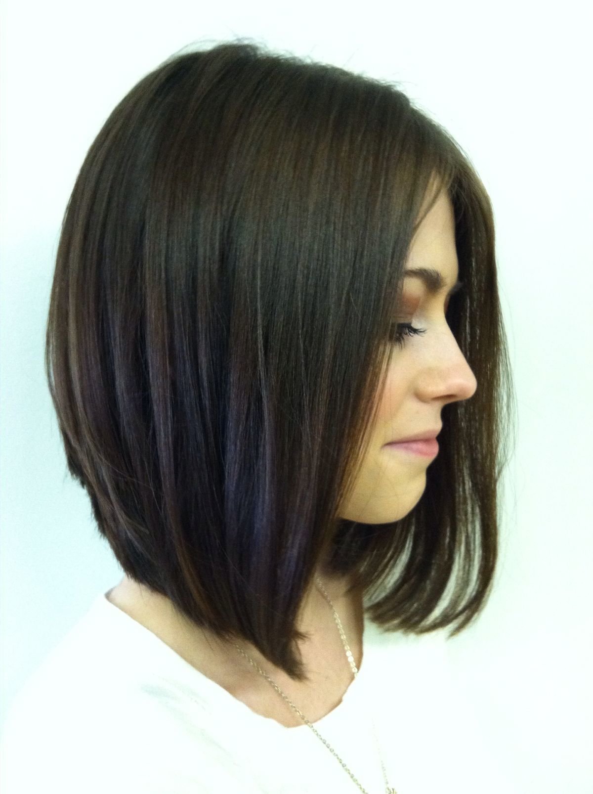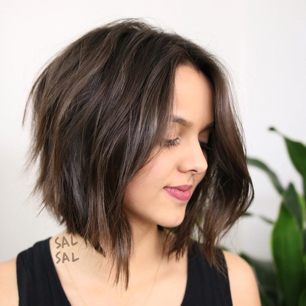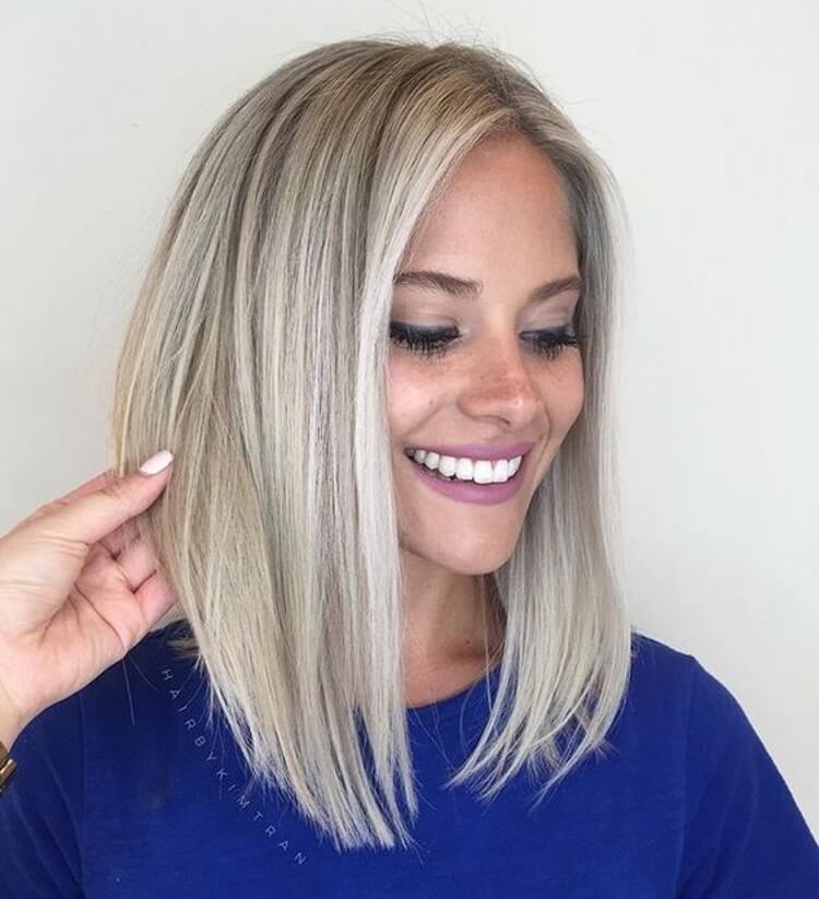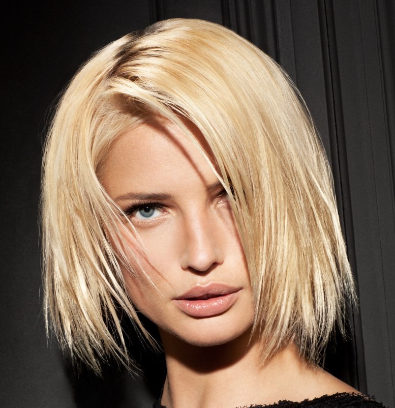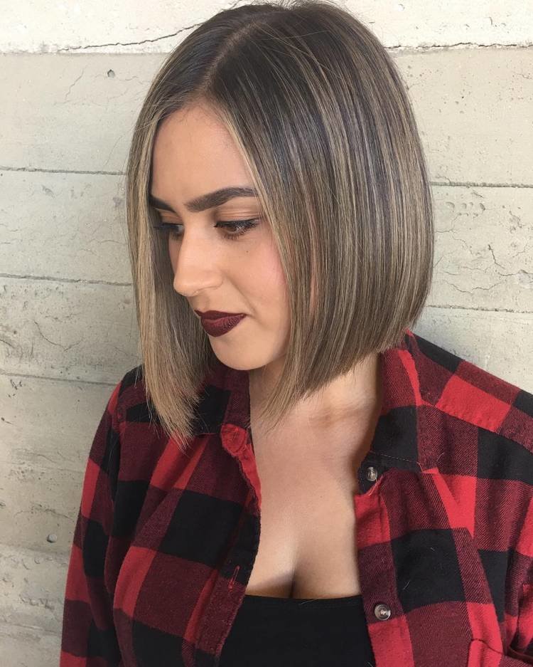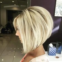Angled haircut is popular among all ages. It is relevant for many female types.