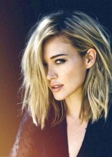 Medium strands, chin-length or barely reaching the shoulders, are unique in their versatility, since they accept any type of caret without a fringe. Moreover, the choice depends only on the shape of the face and structure. The main thing - in contrast to short models, they are clearly visible not only the transitions of shades during dyeing, but also the multi-tiered shearing.