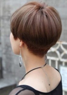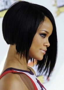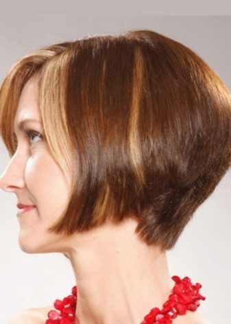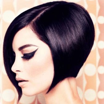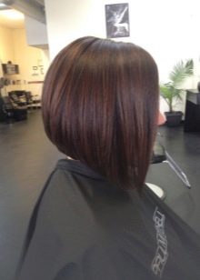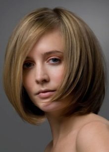 The main difference - clear and strict lines, the lower section of the strands from the face to the back of the head is cut at an angle. Behind the strands are always shorter.