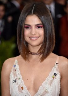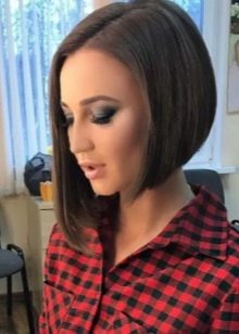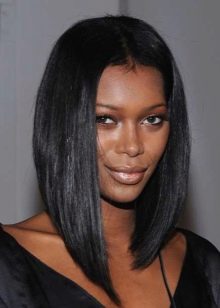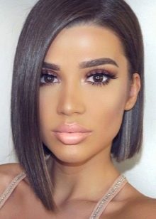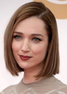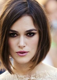 The classic straight quads without bangs, laid smoothly and neatly, creates the effect of a concise business image, looks well-groomed and stylish. To create it, you will need a styling agent that is applied to slightly damp and well-combed hair. After that, when they dry out, they are pulled out and disassembled with an iron. At the last stage, you should fix the result with a special latch. Masters do not advise to use lacquer, because it makes the hairstyle heavier, it is better to use light sprays.