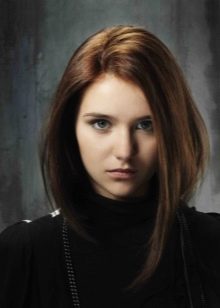In the classic version of this hairstyle is a neatly trimmed cap with a straight line bangs, reaching almost the level of the eyes. Masters consider the model to be basic, since on its basis many options have been invented not only for haircuts, but also for styling. One of them is a quads without bangs. It looks most advantageous on condition that the hair is thick and straight.