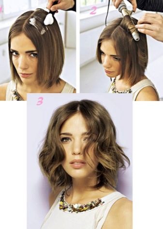- If you don’t have your curls, after you have washed your head, put a styling agent and dried it, use a styler, hairdryer or curling iron.Depending on the direction of twisting of the curls, the image will be different. To obtain a fluffy cap, twist at the roots, while the tips can be left straight.