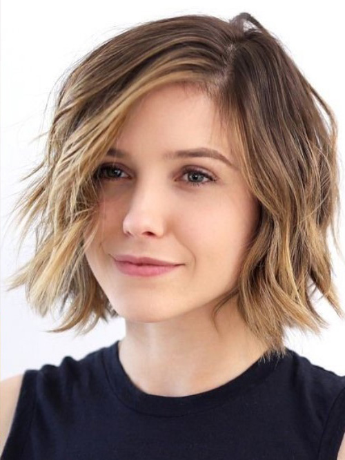 - A circle. Stop on elongated options below the shoulders. Such hairstyles visually pull the contour. Try not to wrap the tips inside, it is better to twist it out so that the round face does not become wider. Parting is also contraindicated, preferably lateral. An even lower cut creates a volume that can cause a “short neck” effect. Therefore, it is better to opt for ragged and asymmetrical edges.