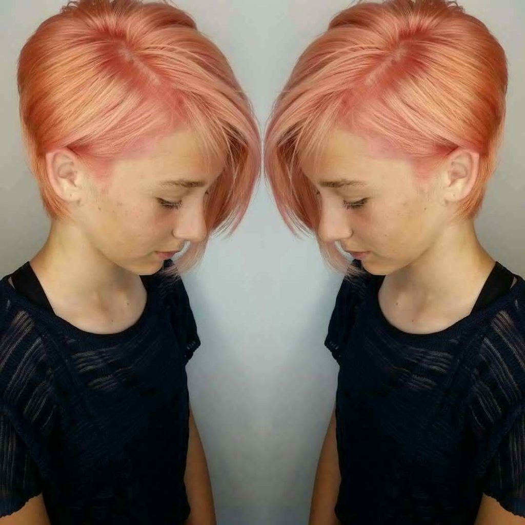 The elongated front strands are clipped obliquely compared with the back of the head. This makes it possible for girls who are wary of an abrupt change of image to maintain their length.