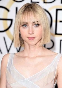 It goes well with both everyday and evening or club bow. Caress helps blondes highlight the merits of facial features or hide some flaws. For example, by adding a bang to your hair, you can make the image fresh and more youthful. Small wrinkles on the forehead will not be visible, which will help to rejuvenate the image.