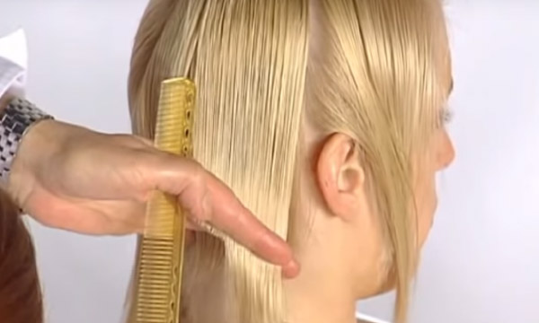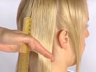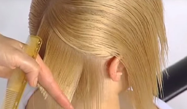 Starting a haircut is necessary from the back of the head. First, cut the control strand, thereby determining the length of hair. Then, one after another, the curls are pulled in the direction of the occiput at an angle of 45 degrees. Each subsequent strand should be 1.5 cm longer than the previous one.