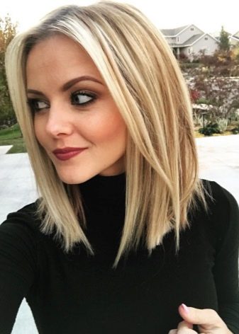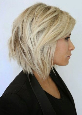 Caret with lengthening differs more significant difference in the size of the strands of the face and hair on the back of the head. The curls framing the face can not only reach the chin, but also descend a little lower. Such a contrast looks very stylish, bold and bright. In addition, this haircut is great for any type of person.