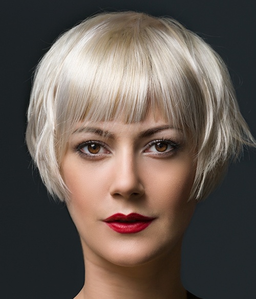 Oblique fringe along the face visually pulls it a little. Girl with small features suit a classic short car. It will emphasize the miniature of the owner.