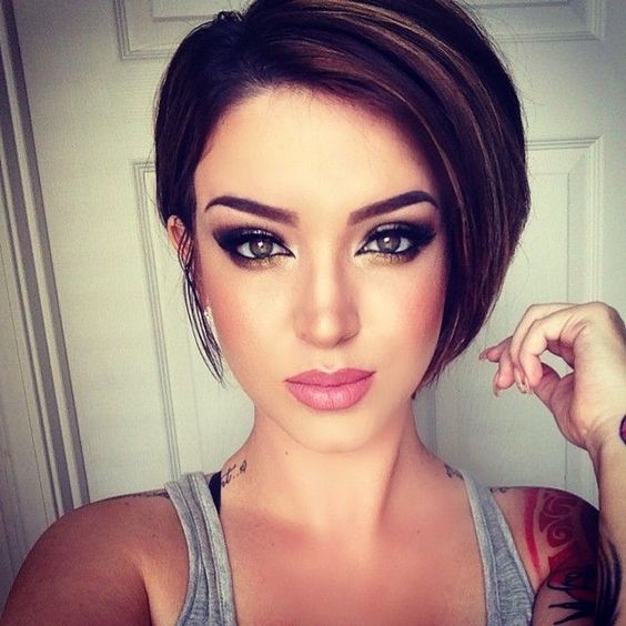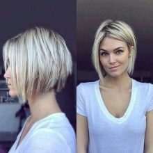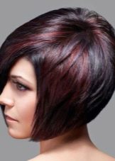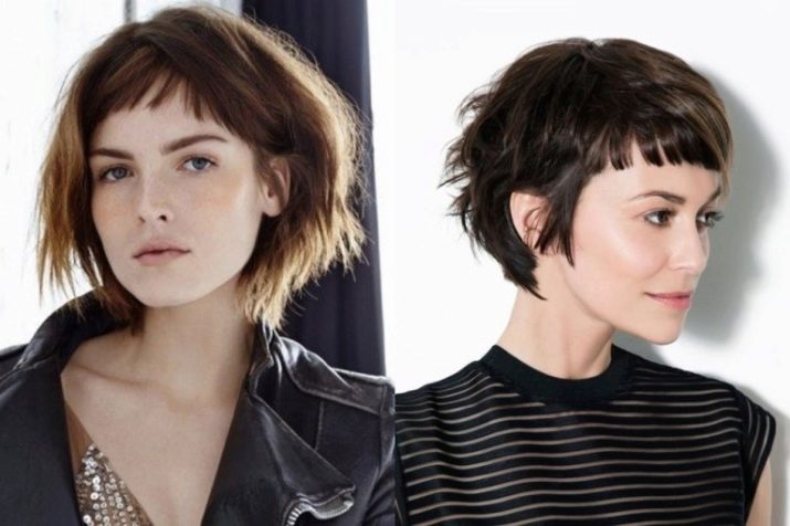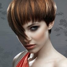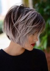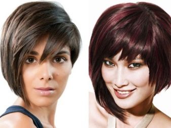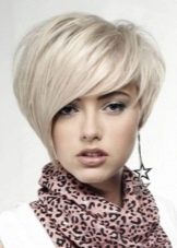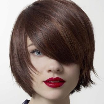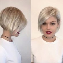 The short four of a kind with a thin girlish figure and a long neck perfectly blend in well. Often it is a short square that undergoes ombre staining, asymmetry, or shaving a pattern on the back of the head or temples. The original oblique four-sided short hair with coloring of some strands will suit not only girls with perfect features, but also older women, as it successfully corrects some of the flaws. Bangs successfully mask wrinkles, making the face visually younger. A short square with graduated ends looks luxurious, if painted in bright colors: red, black, platinum.