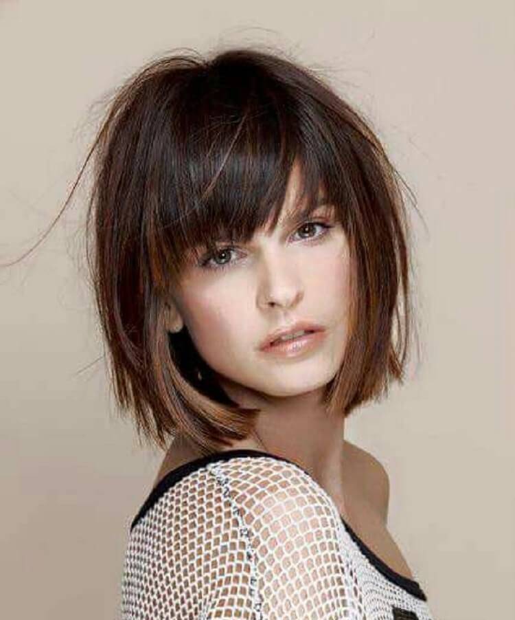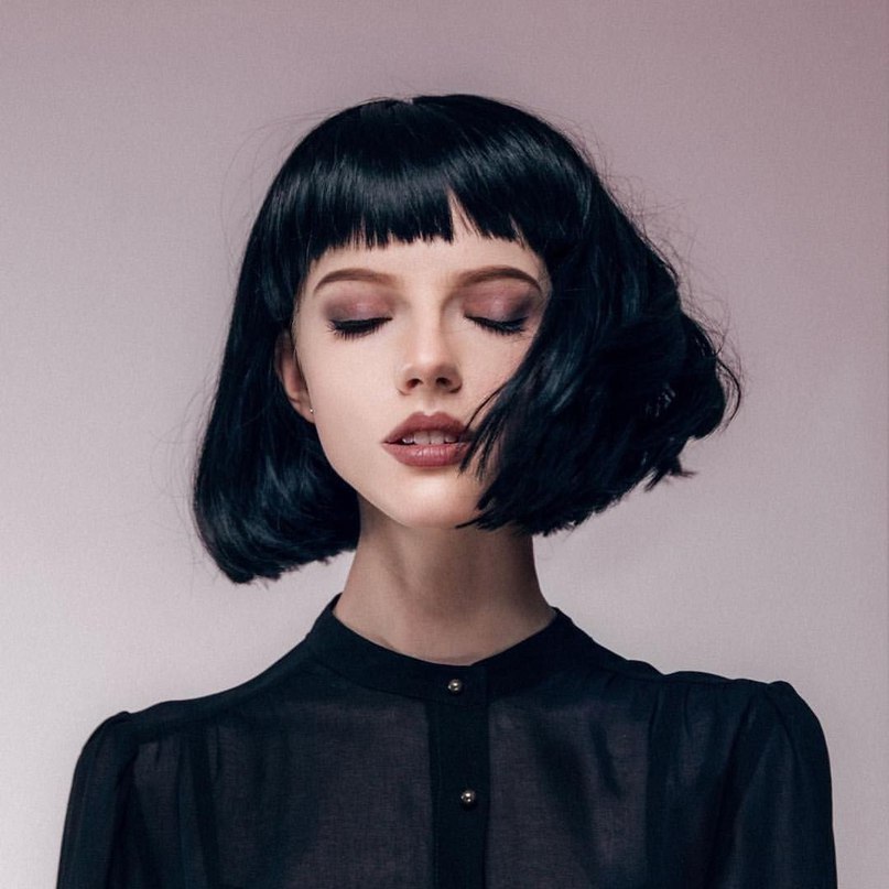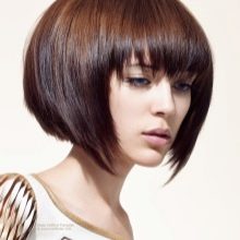 The classic bob haircut implies smooth geometric lines with bangs or without them and is especially suitable for women with an oval or triangular face shape. Straight bangs give haircuts a smooth shape and lies perfectly on thick hair.