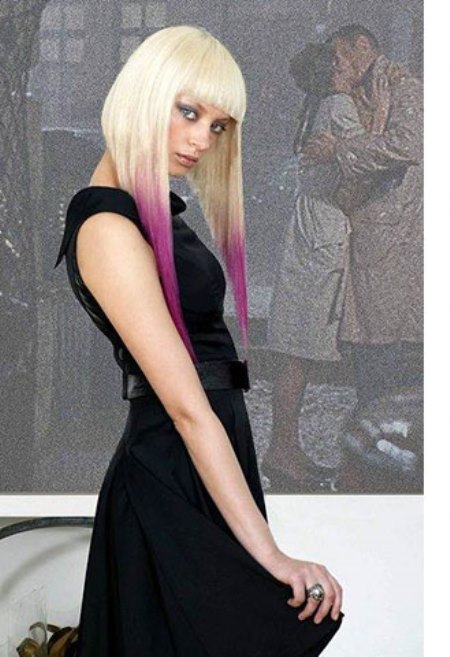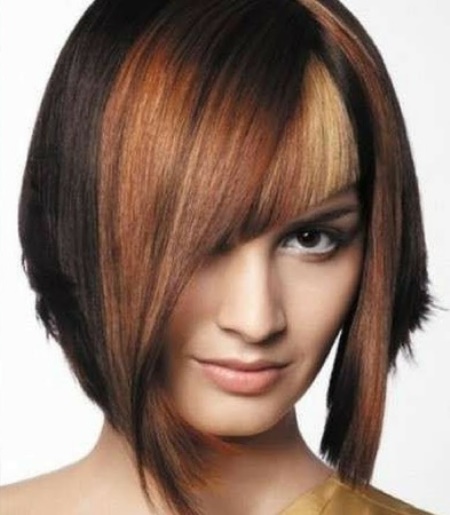 - The asymmetry of the haircut, elongated bangs and bright hair color - for energetic natures who do not like monotony and despondency.