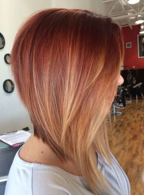 The most common type of graduated car, where the front strands are slightly longer than the others. This haircut can be done on straight or slightly wavy hair. The length of the hair, the direction and angle of the cut, you can choose any. So, if you perform an internal graduation on the back of your head, the strands will be shorter, and the hairstyle will become more lush and voluminous. It turns out very impressive - long flowing hair near the face and an open beautiful neck from behind.