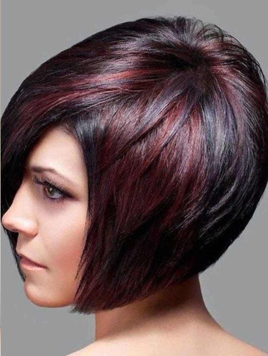 - Round face visually lengthened due to the long strands with competent staining. It is better to use a non-monochromatic dyeing, select or highlight the front strands by dyeing. Haircut bob with graduation strands go girls and women of different ages.