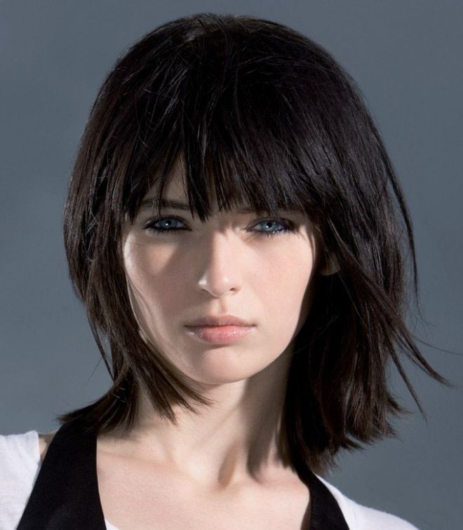 Haircut balances proportions by placing accents in the right places. May give a kind of rebellious or fatal appearance. Can be used on both straight and curly hair.