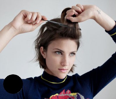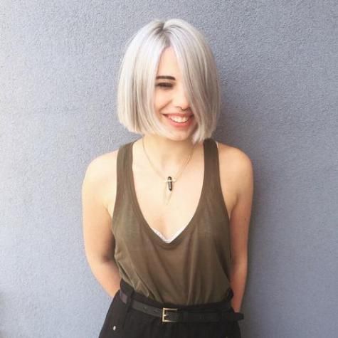 - Original looks and asymmetrical kare. Washed and dried hair combed to one side, sprayed with varnish.