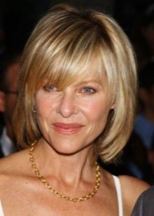 Square faces can be alleviated by a slight asymmetry; oblique bangs and parting from the side can best do this. If desired, you can play with coloring strands.