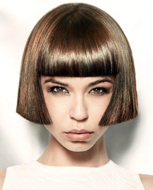 In the classic version, the car is done on the hair length to the neck with a clear contour of the strands, with the obligatory attribute being a straight bang.