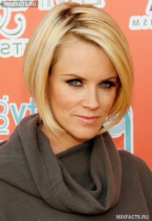 Best of all the car looks on oval faces, however, it should be noted that there are not that many people with perfect oval shape. Most often they are combined with a narrow or too broad forehead, prominent cheekbones or massive chin. In any of these cases, you can choose your short car. If you have a round face, then the main task of a haircut is to pull it a little. In this case, it is best to dwell on graded variants, to create a maximum volume on the top of the head, and rather long locks on the front are desirable.If you have a high forehead, then direct bangs will not be superfluous, and if your forehead is thin, then you should prefer a haircut without a bang.