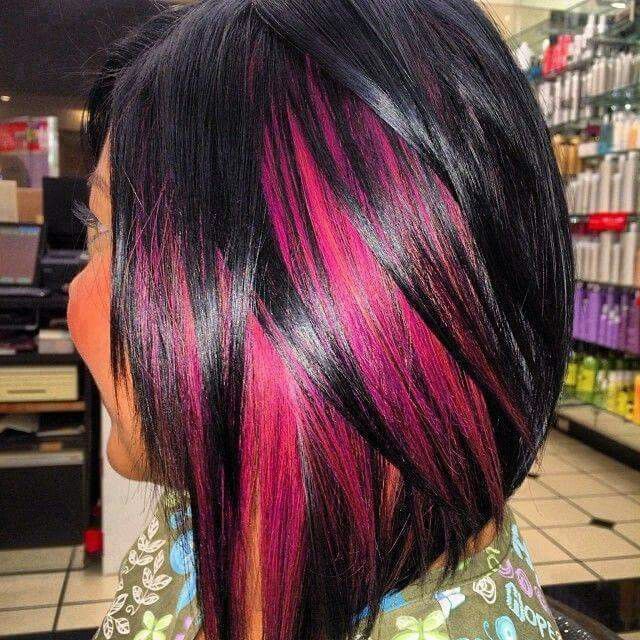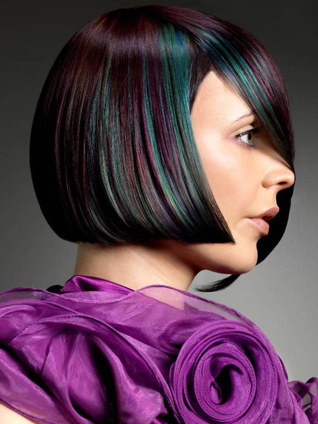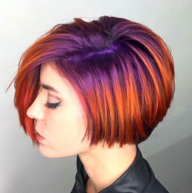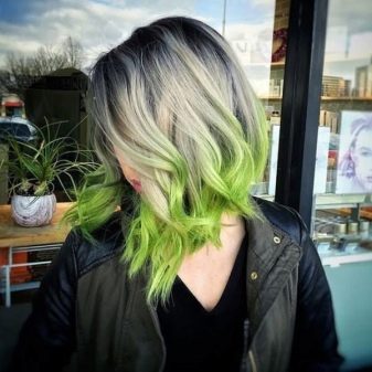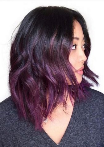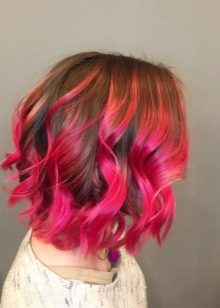 This method of highlighting hair is popular in women with short haircuts. In this case, paint the lower part of the curls, while use bright colors. If a woman has naturally dark hair, then to dye in a contrasting color, they are first brightened, and only then bright paint is applied.