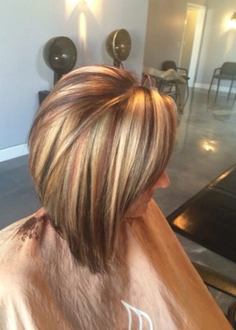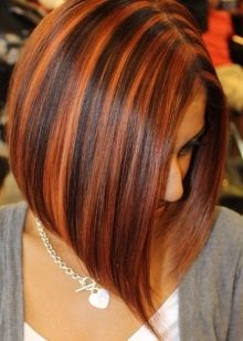 Stylists are advised to combine it with highlighting for women with a haircut. Such staining lengthens the curls and gives the hair extra thickness and volume. Coloring strands has quite a few different options, so each woman will be able to choose exactly the color scheme that will fully meet her wishes.