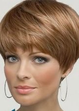 The shortened version is chosen by young girls, as it emphasizes trimmed almost to the back of the head. The neat shape of the face goes well with any kind of square, however, the short version is most preferable, as it emphasizes the refinement, fragility and special charm of youth.