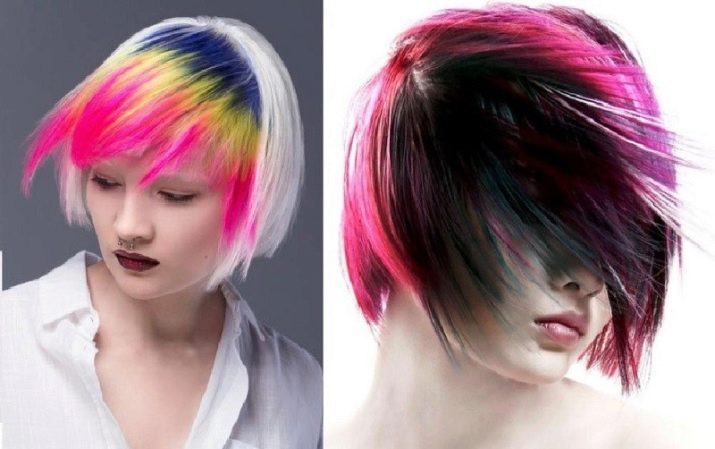 Contrast coloring of strands will help to stand out from the crowd, to be bright, attractive and noticeable. Decorated in iridescent colors, the curls are able to decorate both a single bang and all hair. The type and extent of staining may be different.