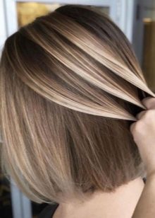 Balayazh is one of the most fashionable technician in 2018, it looks especially beautiful on the square. In this case, the master works with the help of vertical lines, affecting only the uppermost layer of curls, the inner hair layer remains intact, so the coloring looks natural, and besides, it is relatively safe for the hair.