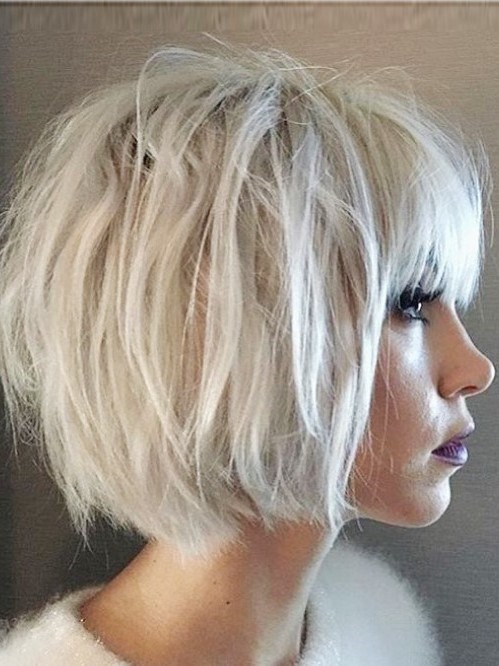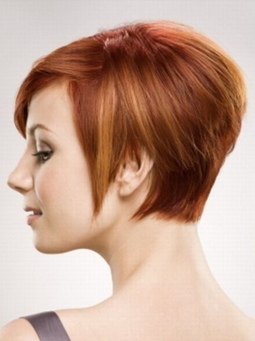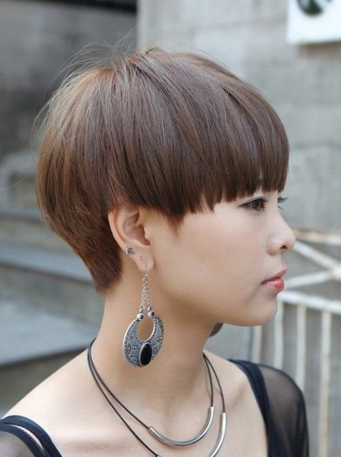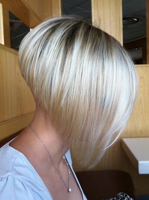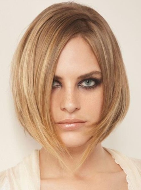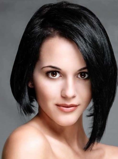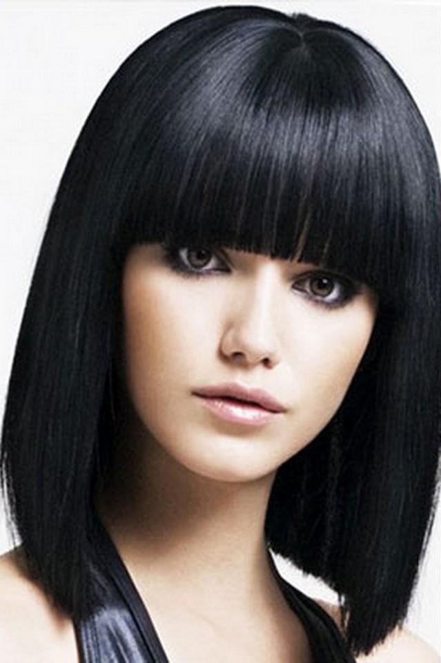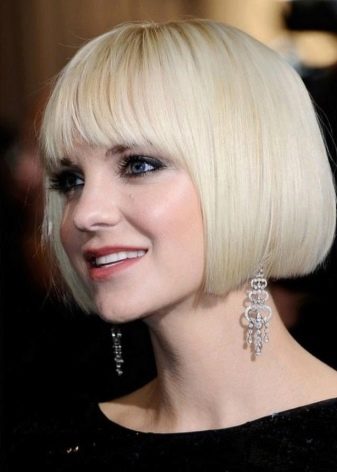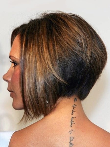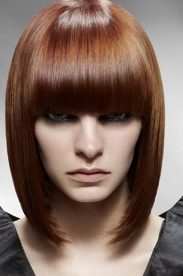 The angle in the haircut is smooth or extremely sharp, everything will depend on the wishes and tastes of the girl. The strands on the occipital region in this case are cut fairly short. The hair in front can reach the collarbone. This haircut with bangs emphasizes the entire structure of the hair and visually corrects the flaws on the face.