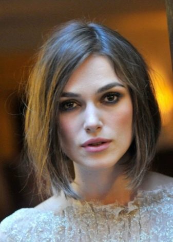 Keira Knightley and Cameron Diaz for a long time demonstrated simple options for four-piece without a bang. This haircut does not need complicated styling, it always looks feminine and elegant. The front strands fall just below the chin and visually stretch the face.