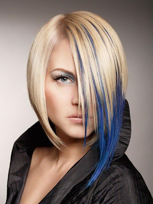 Special expressive hairstyle gives creative coloring. Slightly different in color paint creates a visual volume on the hair.