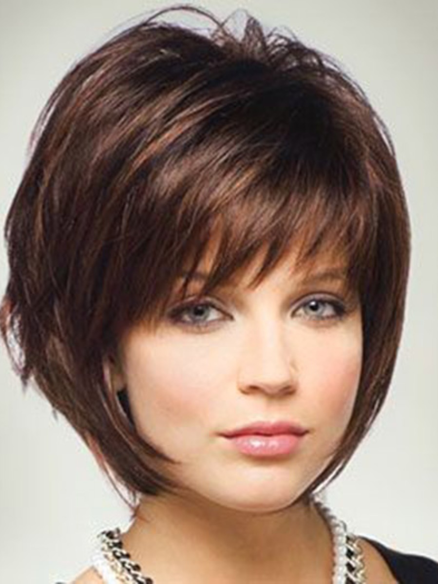 - Round face can be corrected with a caret with graduations. This haircut will harmonize the large features of the face.