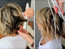 Curls for hairstyles can be curled with a curler, ironing or curling. Use a heat spray. Carefully straighten the strands. Strengthen the caret with varnish. So that ready-made curls do not stick together while you are doing hair, alternate the direction of curls.