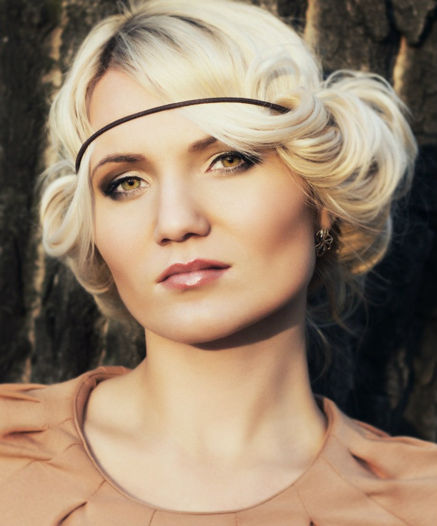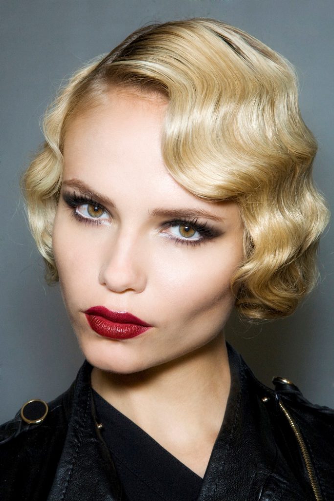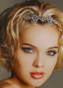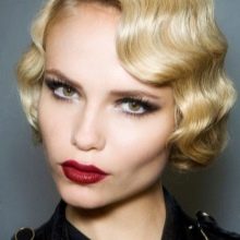 Apply mousse. Create large curls curling. Comb the strands back and fasten the hairstyle. Secure it with tape or thin rim. Fix varnish.