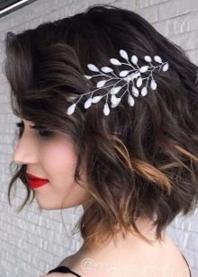 If the length of your bob allows you to collect hair, then try to make such a tail. Gather hair in a ponytail, preferably tight, fasten with a thin, but strong rubber band. The end of the tail can be combed, ruffle. To prevent the tail from falling apart, fix it with varnish.