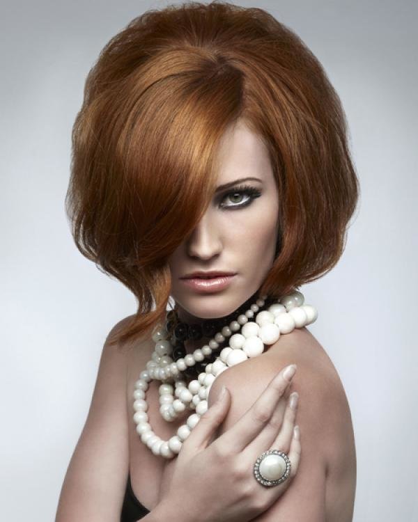 Extravagantly such haircut will look on the hair of an unusual color, for example, blue, red. The hairstyle is laid quickly and simply with the help of a big round comb and a hair dryer.