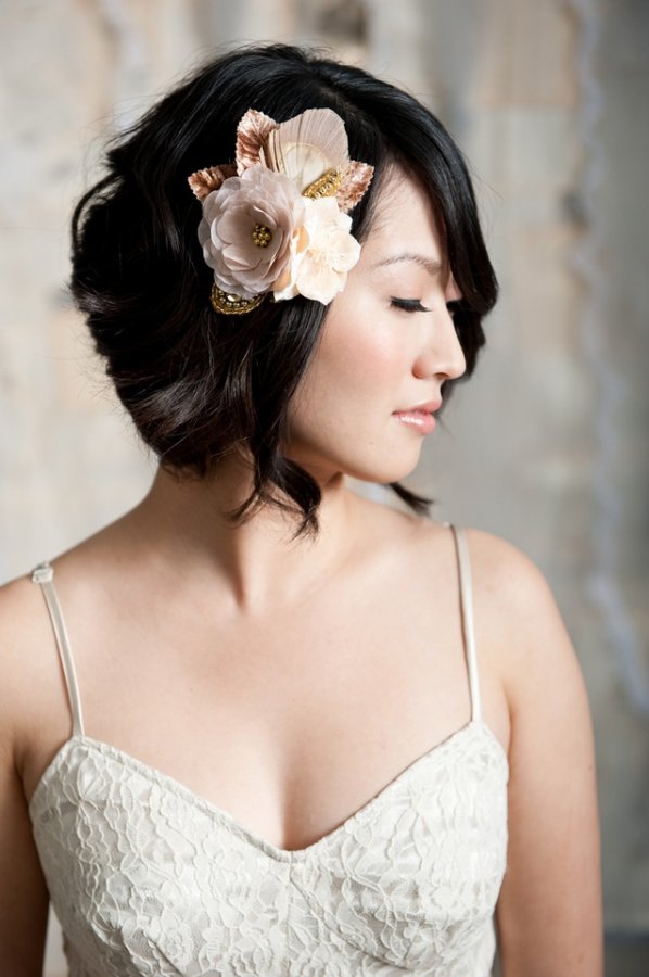 Properly placed accents - the key to a successful image. Enough to complement the image of a large flower or a rim with a volumetric decor.The offset of the decor on the side will allow you to achieve a romantic effect, will give an informal look to the image.