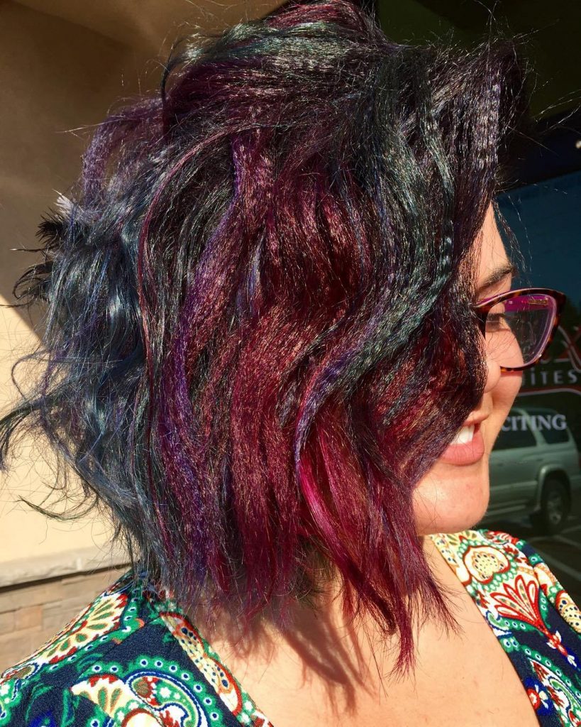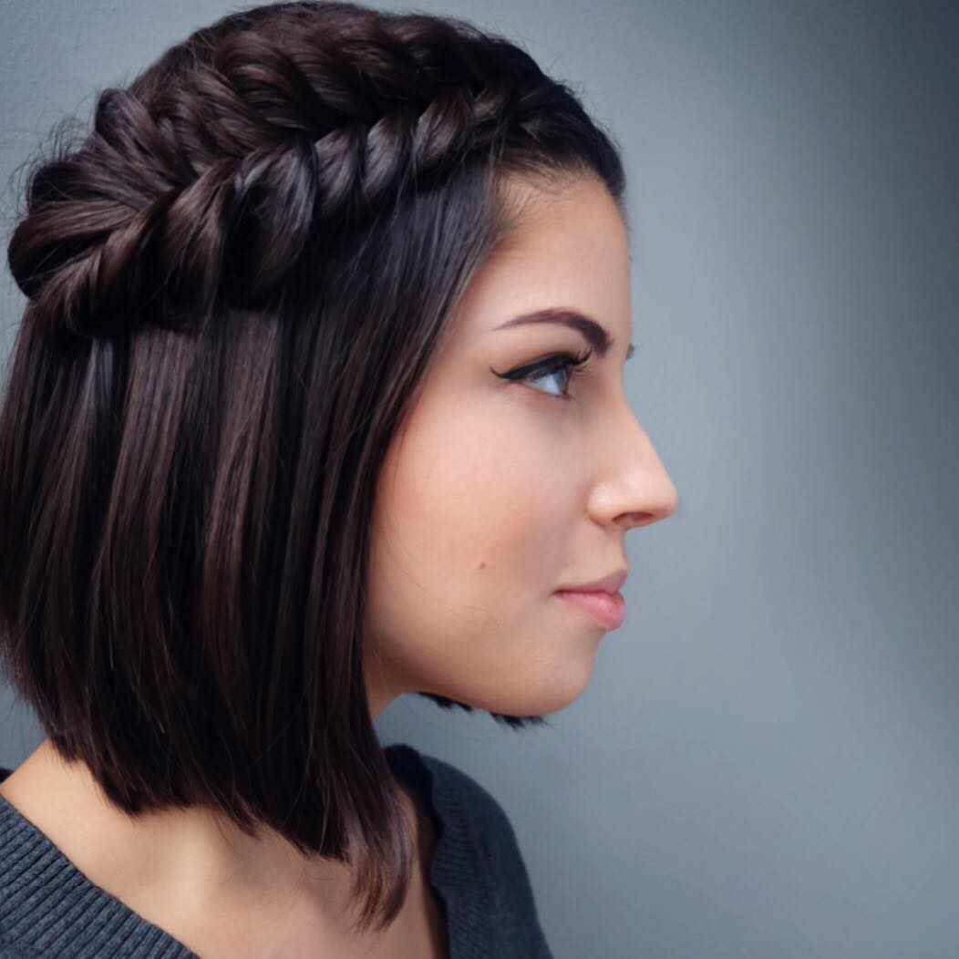 And here you can use the elements of weaving or beautiful wide rims that can emphasize the asymmetry of the hair.