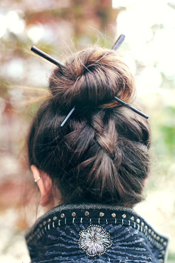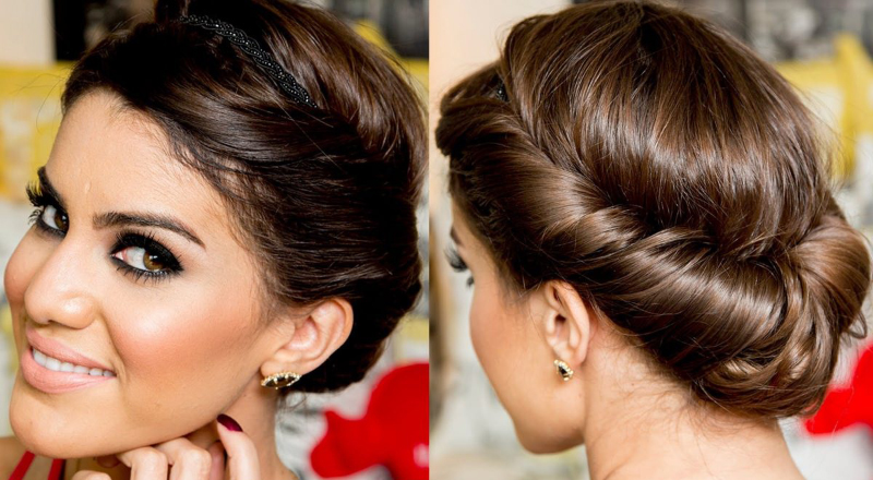 To create it, the hair is pulled back, providing a volume at the back of the head; a few loose strands are left around the face.