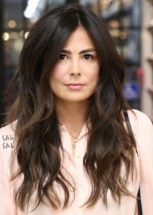 For the cascade haircut, made on long hair, fit and styling with straight hair. This option is well suited for haircuts with bangs. This installation is suitable for both work and holiday events.