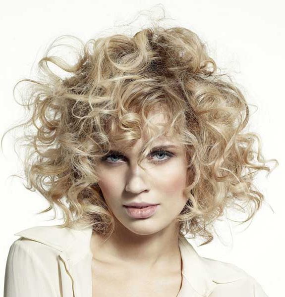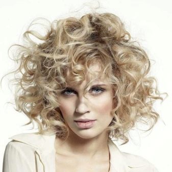Mischievous and cheerful image can be created by means of a hairstyle from small curls. She looks great on light curls. This styling is most suitable for cascading haircuts without bangs. At the same time to create a larger amount of hair, this hairstyle should be performed with the distribution of strands on the side parting.