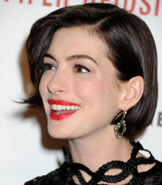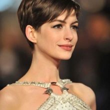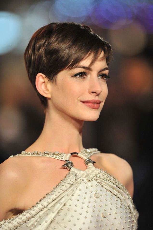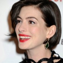 - Anne Hathaway is an avid lover of short classic haircuts. On the carpet paths, it can often be found with a haircut “like a boy,” with a pixie and four of a kind. All haircuts are perfectly matched to the type of her face, and therefore look like an elegant addition literally to any image.