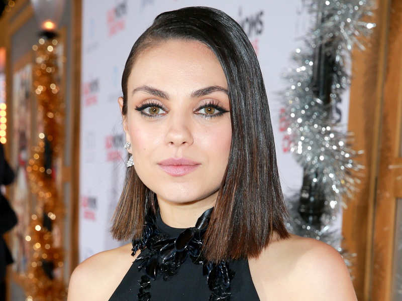 - A beautiful elongated square on dark hair color looks very advantageous on Mile Kunis. The actress prefers direct styling and light waves.