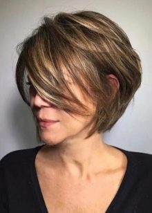 For those who have very thin strands, a multi-layered bob is best suited, where hair cutting is supposed to be done in layers: from long ones to short ones. In addition, this haircut will allow a little thin out too thick hair. This hairstyle is suitable for going to a restaurant, and to create a casual image of a girl.