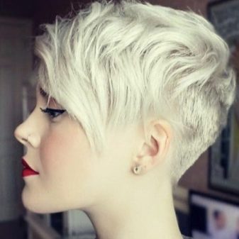 This haircut is suitable for girls who want to stand out from the crowd. She makes the image very cocky. Hair is cut almost the entire length of the head, and longer, they remain on the back of the head, giving the hair volume.