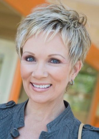 The age category of women after 55 years can be a little experiment with their appearance. That is, to choose such an image that will only add beauty, and not vice versa. Much younger will look like a woman with a pixie haircut or gavroche. For more creative ladies, you can make them flashy, with oblique bangs or with different hair lengths.
