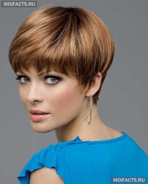 This haircut is suitable for women of all ages. For example, for young virgins, she will add some individuality, but for more mature ladies, she will allow her to immediately lose a few years. Bangs must be short as well as clipped in a semicircle. In addition, this haircut allows you to hide some defects.