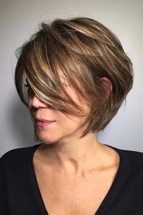 After 45 years, women need to emphasize their attractiveness and hide the flaws and age-related features. Therefore, you should pay attention to such haircuts as a cascade or ladder. They will help to hide any shortcomings that have appeared, as well as to focus on the merits of a woman. Very “fashionable” will look haircut with straight bangs.